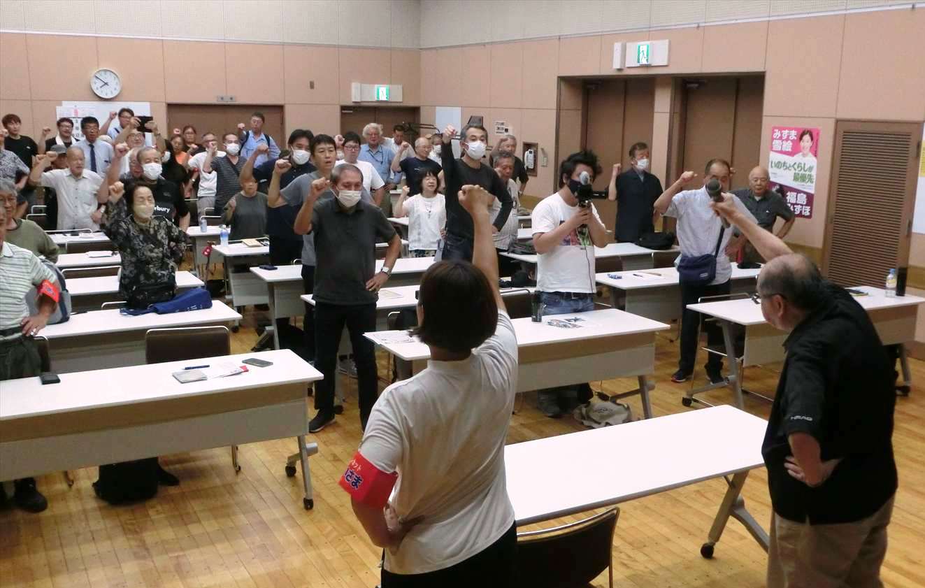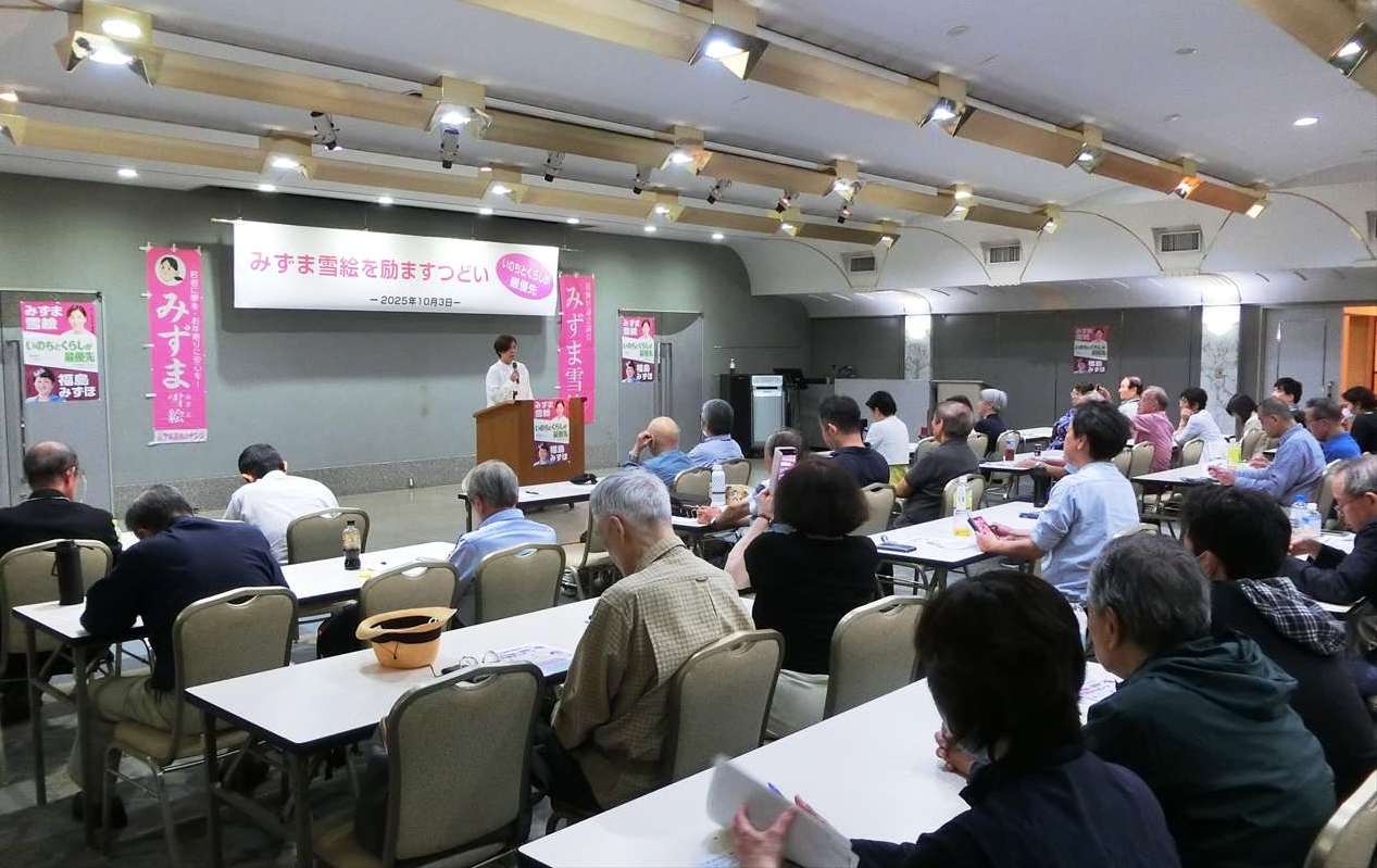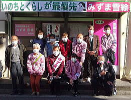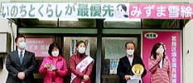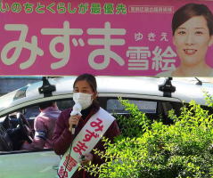 31日9時よりみずま雪絵区議の出陣式が大勢の支援者のもと開かれました。